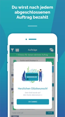 Schließen Sie sich 2.000.000 Nutzern an und übernehmen Sie kleine, flexible Jobs direkt mit Ihrem Smartphone. Verdienen Sie einfach und bequem Geld in Ihrer Freizeit, indem Sie Aufgaben in Geschäften in Ihrer Nähe erledigen.