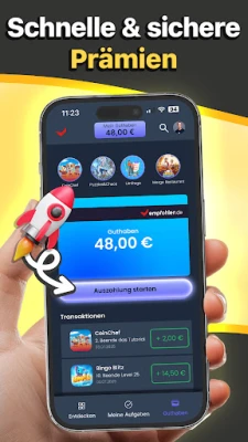Nach Ihrer kostenfreien Registrierung bei empfohlen.de erhalten Sie sofortigen Zugang zu einer vielfältigen Auswahl an spannenden Aufgaben. Egal ob Sie gerne die neuesten Apps ausprobieren, innovative Produkte testen, an kurzweiligen Umfragen teilnehmen oder Ihre Gaming-Leidenschaft zu Geld machen möchten – die empfohlen.de App hält maßgeschneiderte Gelegenheiten für Sie bereit. Jede abgeschlossene Aufgabe wird vergütet, und Sie können sich auf regelmäßige Einladungen zu neuen Tests und Projekten freuen, die stets Ihren Interessen entsprechen.