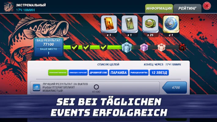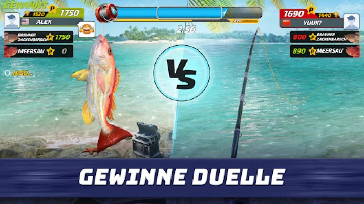 Tauchen Sie ein in die fesselnde Welt von Fishing Clash, dem ultimativen mobilen Angelerlebnis, das die authentische Detailtiefe eines Simulationsspiels mit der packenden Spannung kompetitiver Sportspiele und der herzlichen Kameradschaft sozialer Angler-Apps meisterhaft verbindet. Entdecken Sie unzählige Gewässer rund um den Globus, von den sonnenverwöhnten Küsten Floridas bis zu den exotischen Weiten der Galapagos-Inseln und den idyllischen Ufern des Bodensees. In Fishing Clash erwartet Sie eine reiche Vielfalt an Fischarten, die nur darauf warten, von Ihnen entdeckt und gefangen zu werden. Bereiten Sie sich auf das Abenteuer Ihres Lebens vor und erleben Sie Angeln neu.