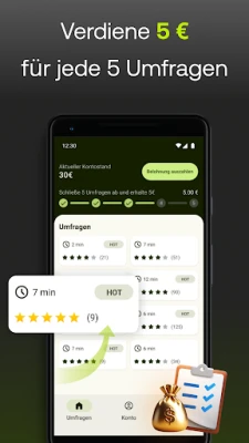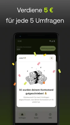 Mit Five Surveys verdienst du schnell 5 €, indem du nur 5 Umfragen abschließt. Teile deine Meinung mühelos direkt vom Smartphone aus und verwandle deine Gedanken in bares Geld. Entdecke eine einfache Möglichkeit, mit bezahlten Umfragen zu verdienen.