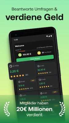 HeyCash ist deine App, um durch bezahlte Umfragen, Spiele und Angebotswände sofort Bargeldprämien zu verdienen. Verwandle deine Meinungen und Aktivitäten einfach in echte Belohnungen, direkt von deinem Mobilgerät aus.