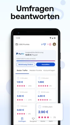Profitieren Sie von einer stetig wachsenden Auswahl an neuen Umfragen, die täglich hinzugefügt werden, um Ihr Verdienstpotenzial kontinuierlich zu erweitern. Das Ausfüllen von Umfragen ist dank der intuitiven Benutzeroberfläche von Prime Opinion denkbar einfach und stets sicher, sodass Ihre Antworten vertraulich behandelt werden. Ihre erzielten Einnahmen können Sie bequem über ein übersichtliches Echtzeit-Dashboard verfolgen. Genießen Sie schnelle und unkomplizierte Auszahlungen direkt auf Ihr PayPal-Konto oder wählen Sie attraktive Geschenkkarten als Prämie für Ihre wertvollen Beiträge.
