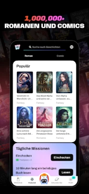 WebNovel beherbergt eine expansive Bibliothek, gefüllt mit den kreativen Werken talentierter Geschichtenerzähler aus aller Welt. Eine intuitive Benutzeroberfläche garantiert ein nahtloses Leseerlebnis, das Sie tief in jede Wendung und Überraschung eintauchen lässt, sei es in Romanen, Mangas, Comics oder Webtoons. Doch WebNovel ist nicht nur ein Ort zum Lesen; es ist auch eine Plattform für aufstrebende Autoren. Teilen Sie Ihre eigenen Visionen, nehmen Sie an Schreibwettbewerben teil und finden Sie ein Millionenpublikum, das Ihre Leidenschaft für einzigartige Erzählungen teilt.